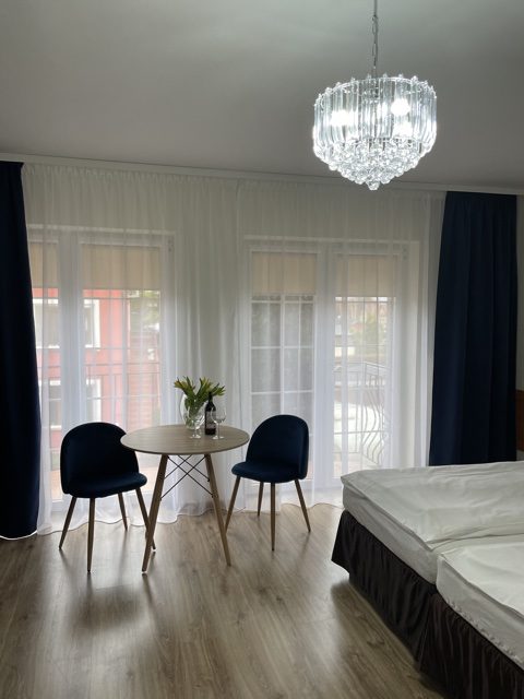 Przygotowaliśmy dla Państwa przytulnie urządzone pokoje. Wszystkie wyposażone są w łazienkę z natryskiem, lodówkę, czajnik elektryczny, TV oraz sprzęt plażowy. Całość okala piękna zieleń z miejscem na grilla i małym placem zabaw dla dzieci.